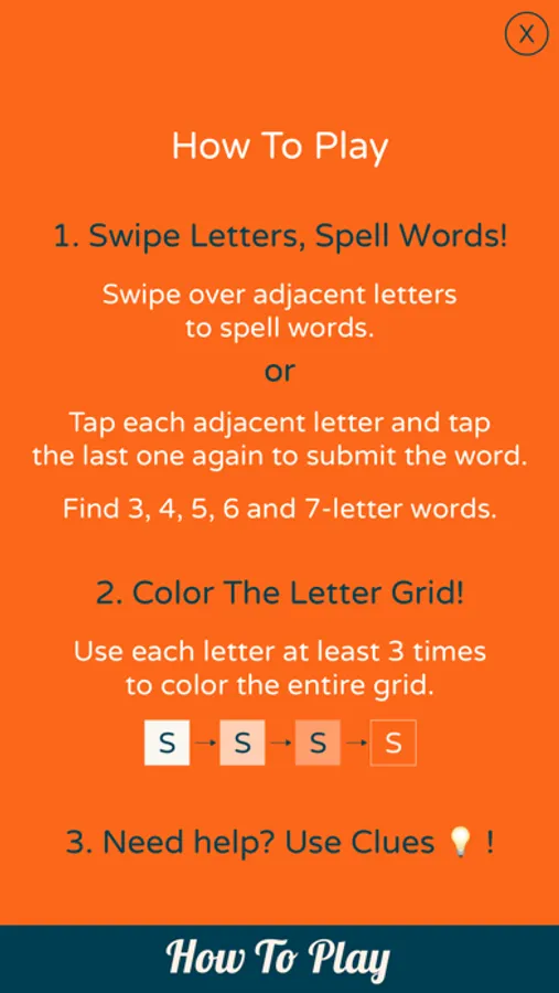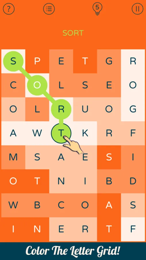 Swipe over the letter tiles to spell words and try to color the entire grid.