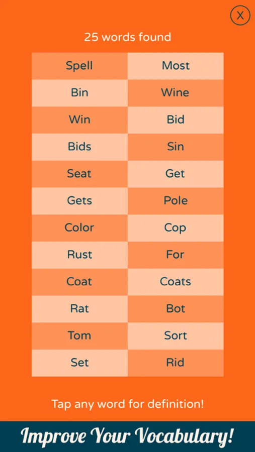 + Dictionary : check the meaning of each word during / at the end of the game