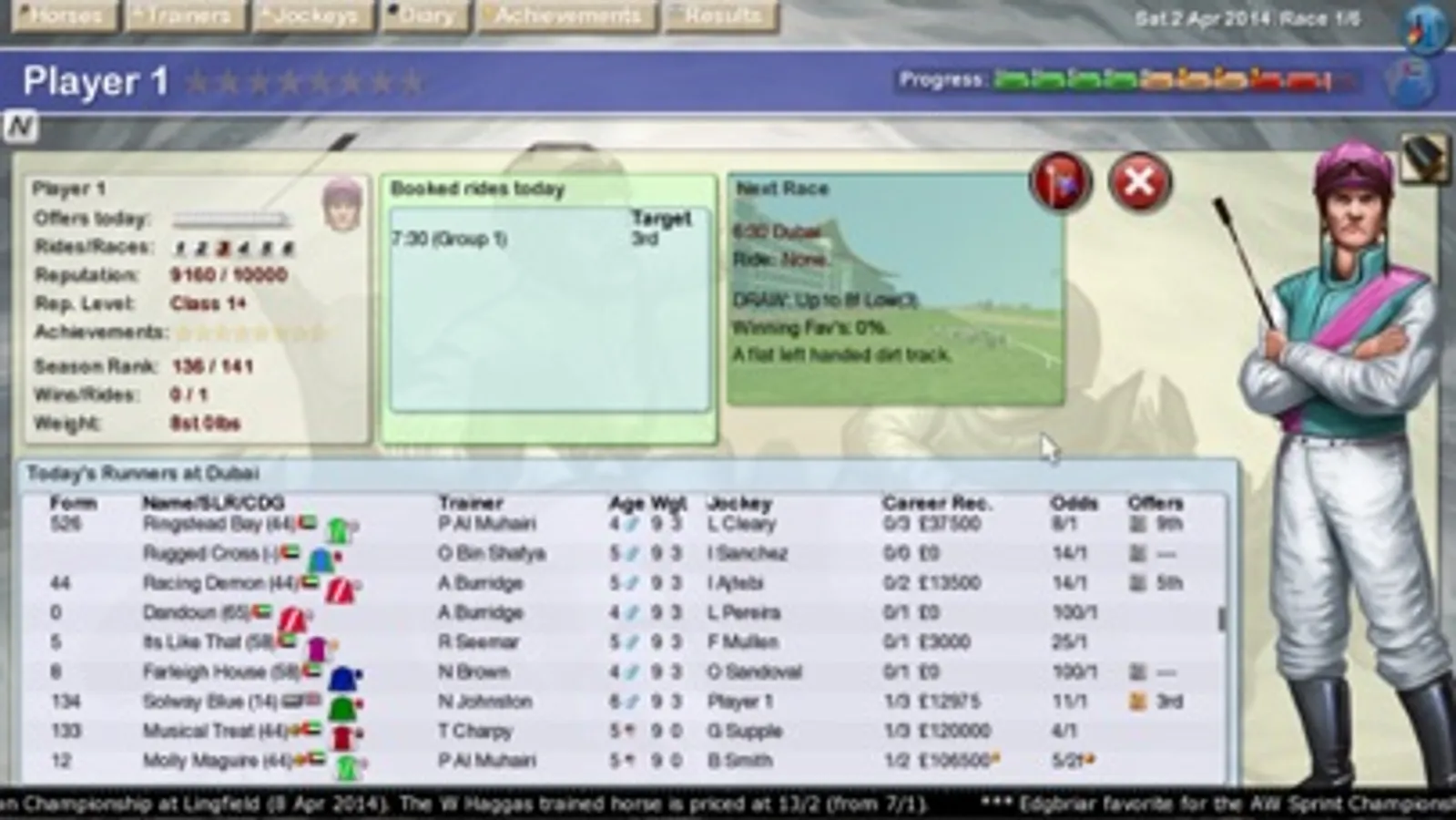 Be the champion jockey. Ride at over 50 worldwide racecourses. Boost your reputations and ride in the Gold Cup, Derby and many more. Win at all costs!