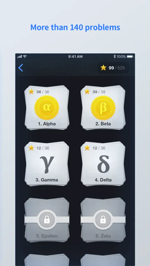 New levels are unlocked as you solve the previous ones. You can complete the whole game only if you earn all the stars (L, E, and V). But you can buy an IAP that removes this restriction. Find more useful hints on Euclidea on our site: https://www.euclidea.xyz/faq.