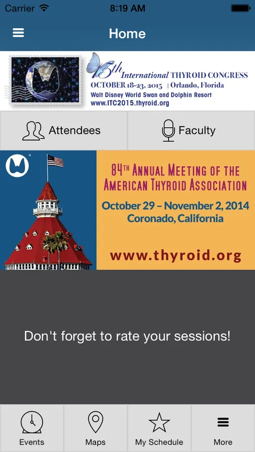 The mobile app for the 84th Annual Meeting of the ATA will provide you with the conference agendas, faculty bios, posters, maps, logistical info, networking opportunities, messages/updates from the conference planners.