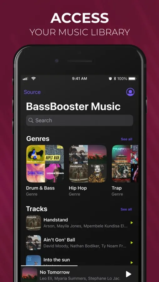 - a Bass Booster: click on the speakers icon to boost your bass volume at a maximum and enhance the quality of your sound