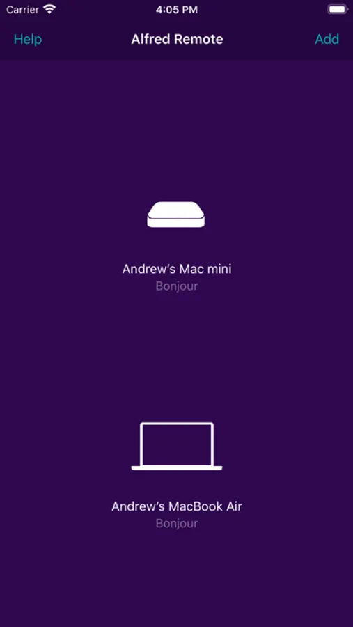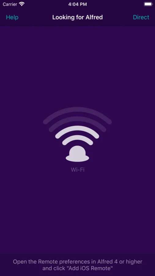 3. Open Alfred Remote on iOS to the 'Add' screen, "Looking for Alfred"