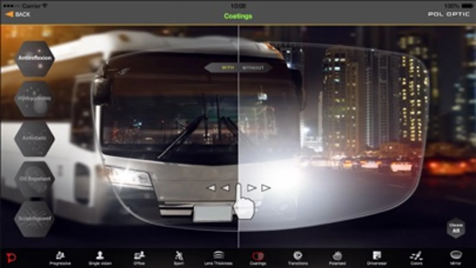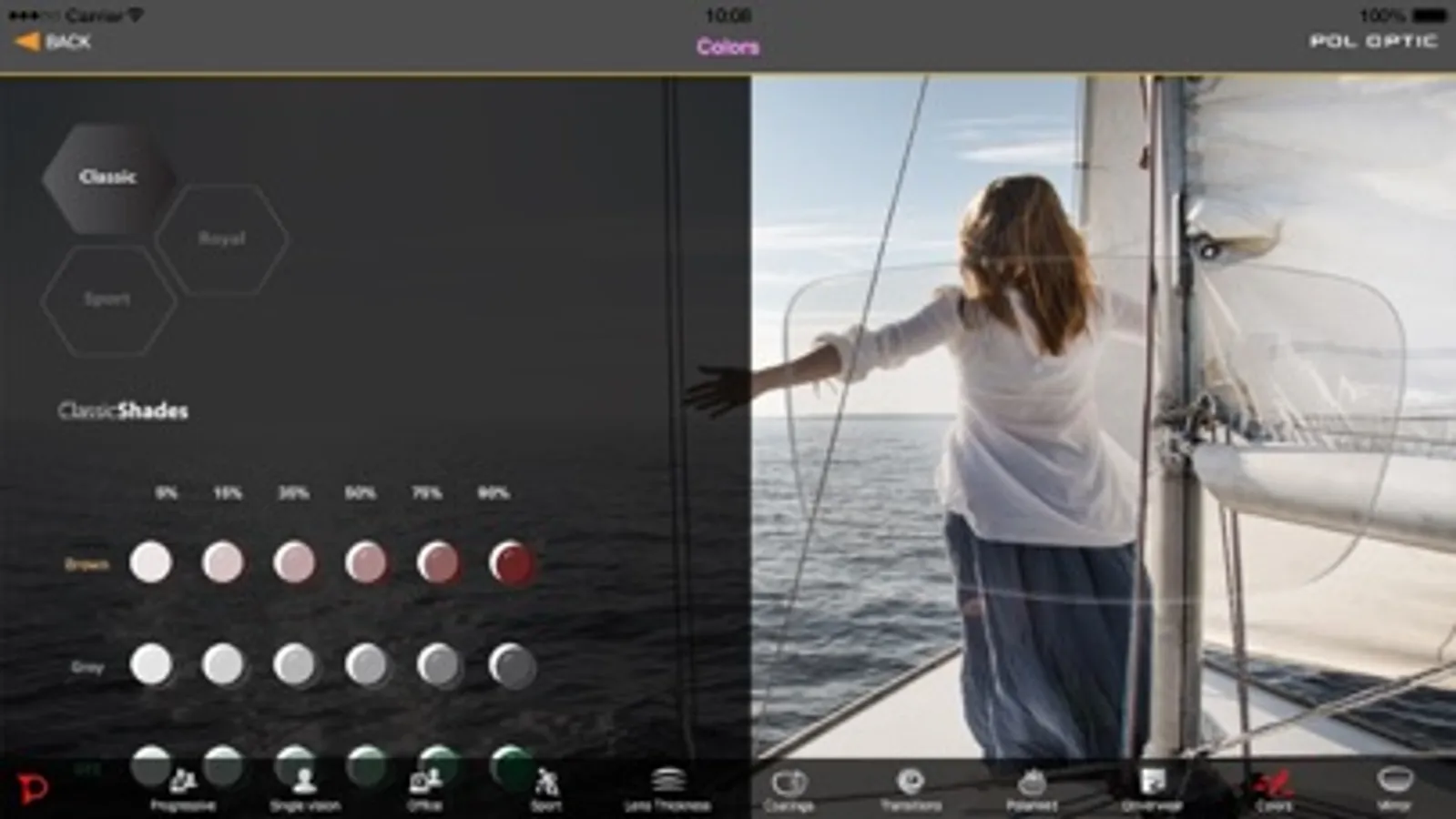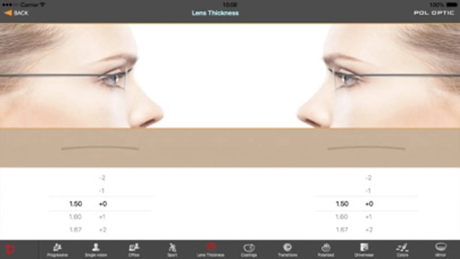 POL Guide is an application created by Pol Optic to help opticians to demonstrate the differences between lens materials, index types and coatings.