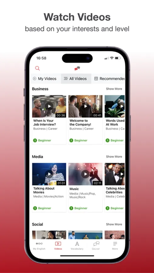 - Watch a video a day with subtitles, recommended based on your level and interests.