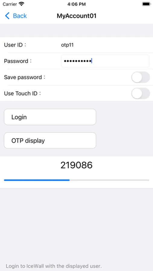 HPE IceWall Smart OTP is an application for smartphones that allows you to perform multi-factor authentication by entering the OTP(One Time Password). Only once at the beginning, you need to do registration of User Account and key of OTP on the smartphone. When you enter the User password in the login page, you can login to the Web sites using the OTP. OTP of IceWall SmartOTP is compliant with OATH.