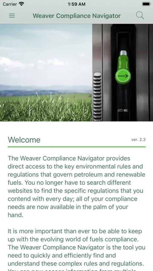 The Weaver Compliance Navigator provides direct access to the key environmental rules and regulations that govern petroleum and renewable fuels. You no longer have to search different websites to find the specific regulations that you contend with every day; all of your compliance needs are now available in the palm of your hand.