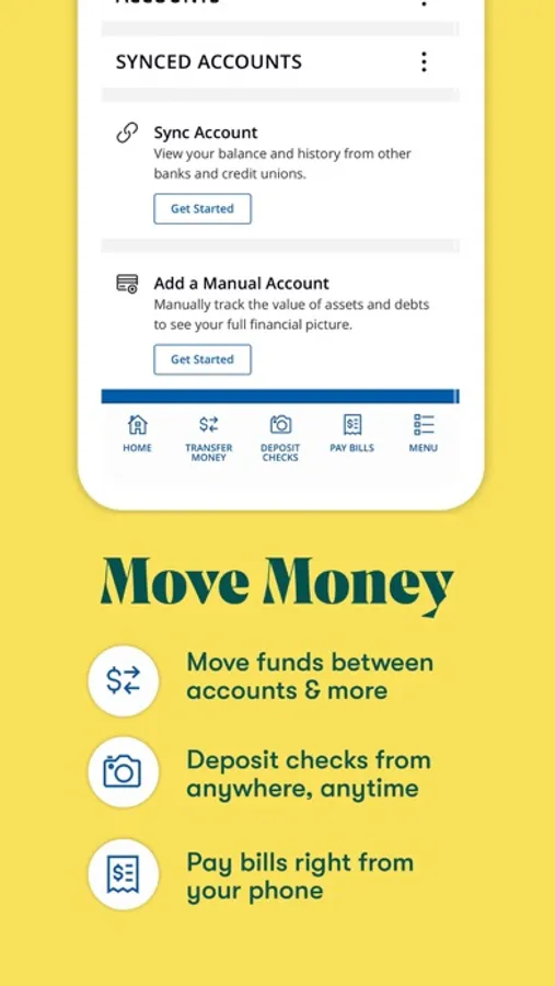 Our Mobile Banking application allows you to check balances, transfer funds, view transactions and check messages from anywhere, anytime. It’s fast, free and available to all of our Online Banking users. With this app you can do the following: