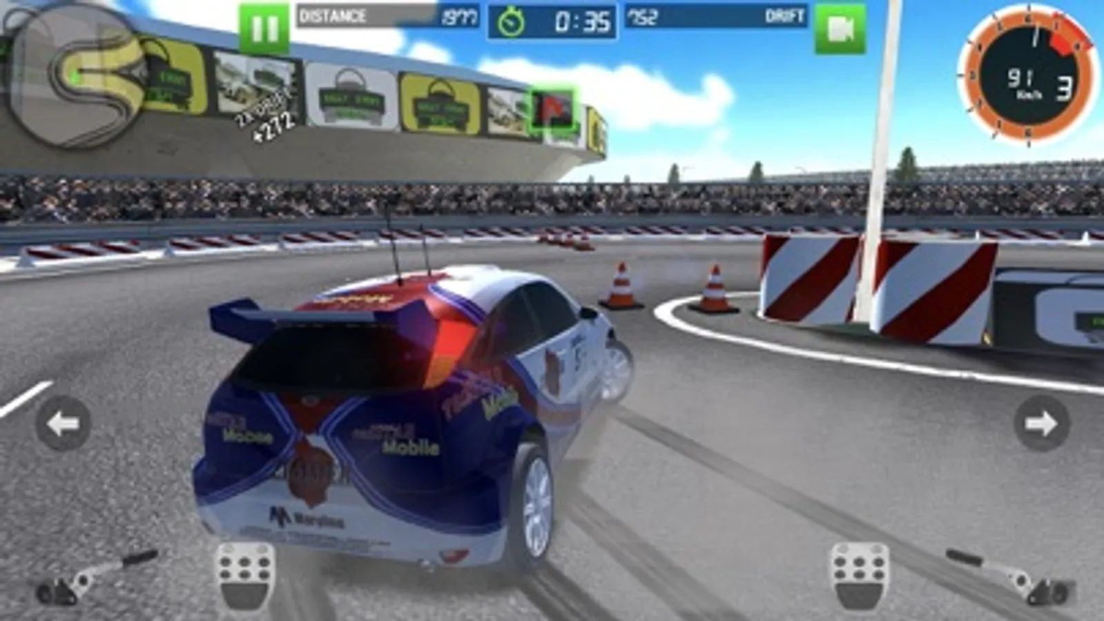 Game has three modes, survival, challenge and realtime multiplayer. In survival mode, you should drift and drive as long as you can, and pass checkpoints. In challenge mode there are 60 different challenges that you have to pass. In realtime multiplayer mode, you can race with real people which are your friends or random players.