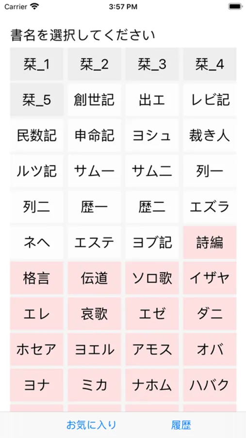 履歴の項目からは、過去に開いた聖書のページや、過去の書き込みなどを確認したり、開いたりできます。