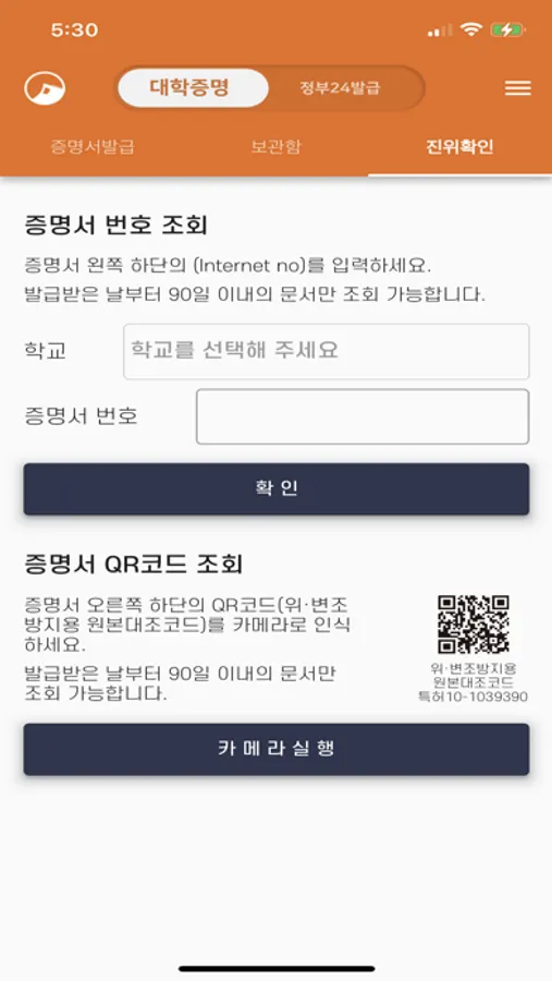 전국 220여개 대학교와 YBM시사 등 주요 기관에 서비스하는 인터넷 증명발급 통합센터 Certpia의 대표 앱!
