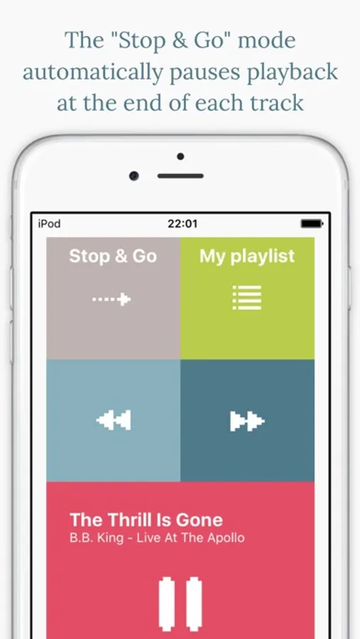 The "Stop & Go playback mode" pauses playback between each track of the playlist, because sometimes you don't want your device to automatically play the next song.