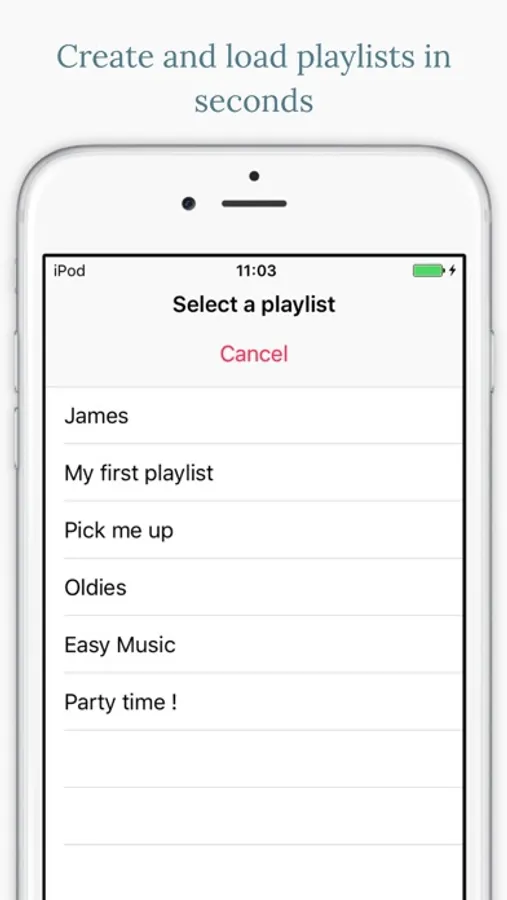 You can load a standard playlist made with the iPhone music player by creating a new playlist in Stop&Go+ and adding all songs from that standard playlist through the playlist tab of the Add song menu.