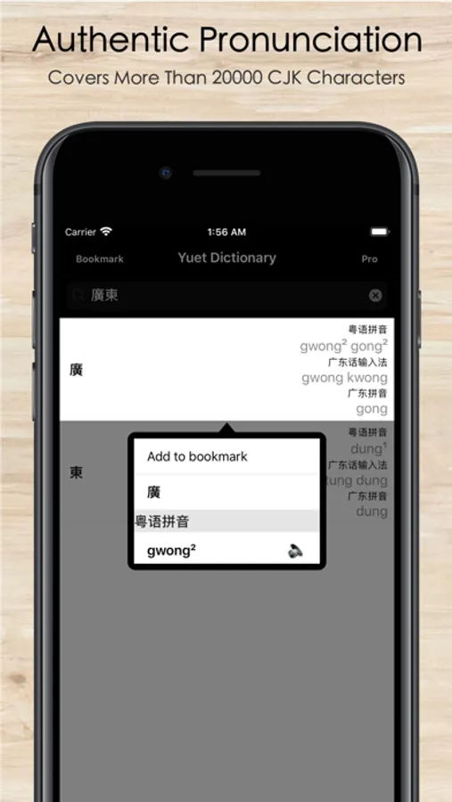 Cantonese Dictionary Pro is the upgraded version of the critically acclaimed Cantonese Dictionary, looking up Cantonese Pinyin is even easier with the pro version!