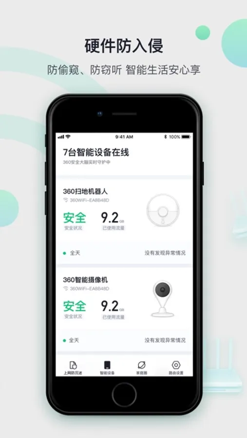 害怕家中摄像头被偷窥、智能音箱被窃听?家庭防火墙具有智能家居防火墙、智能摄像头防火墙、深度检测等功能,一键扫描智能设备,远离网络安全隐患。对家中联网智能硬件进行安全防护,当家中摄像头、智能音箱有异常数据传输时,会立刻通知您。