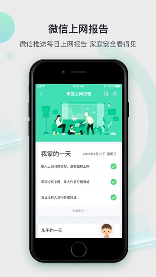 我们会每日为您提供家人上网报告、智能产品上网报告以及家庭防火墙的上网报告,用数据帮您决策如何与家人沟通。就算工作再忙,也能帮您更好的了解家庭上网情况。