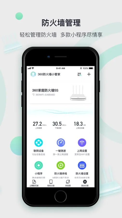360家庭防火墙(原360智能管家)是一款为家守护的黑科技路由,致力于守护儿童、老人上网安全。具有孩子游戏防沉迷、老人上网防欺诈、智能硬件防入侵、微信查看上网报告等功能,为家人营造绿色健康的上网环境。