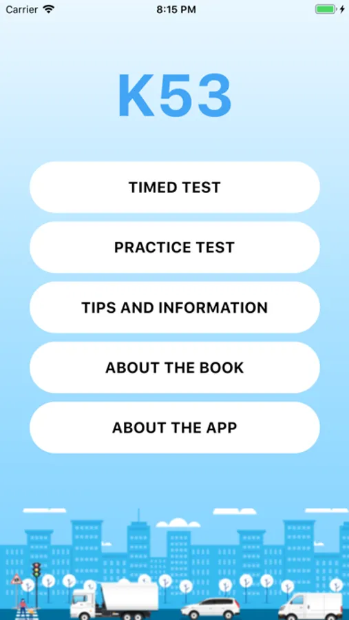 The app is a multiple-choice test only. It complements The New Official K53 Manual which