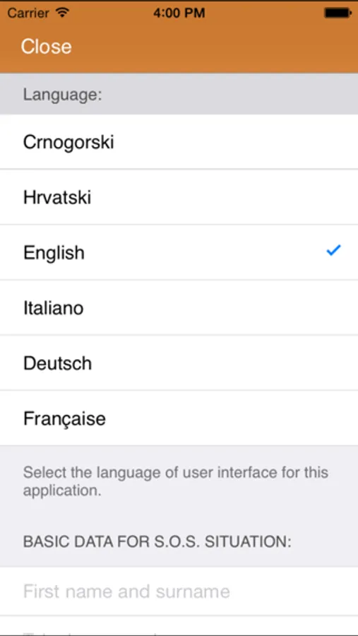 SOS menu is also included in the application. Each user is encouraged to fill in the required information for the purpose of personal safety.