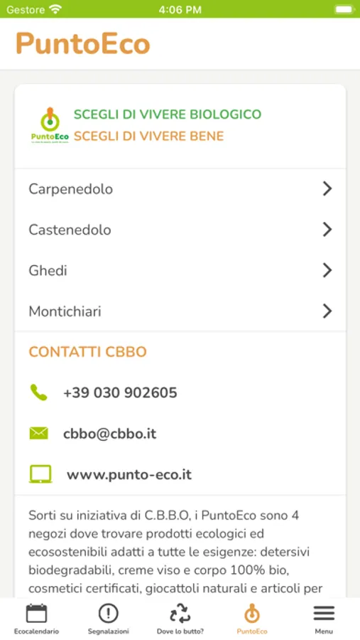 L'applicazione è un nuovo canale di comunicazione, con l'obiettivo di informare e sensibilizzare gli utenti sul tema della raccolta differenziata. Contiene un archivio digitale sempre aggiornato sul conferimento dei rifiuti, una bacheca in cui sfogliare le ultime novità pubblicate da C.B.B.O s.r.l. e consente di ottenere le informazioni su isola ecologica e sportello tari.