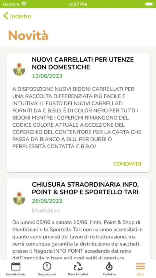 L'eco-calendario e le segnalazioni degli utenti contraddistinguono l'app C.B.B.O e consento una comunicazione diretta ed efficace con i cittadini.
