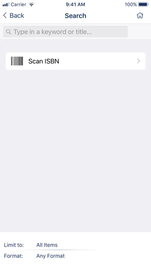 • Search by barcode: Use your device’s camera to scan the barcode on a book, CD, DVD, or other item at a friend’s house or bookstore and search for available copies in the SAILS' Network.