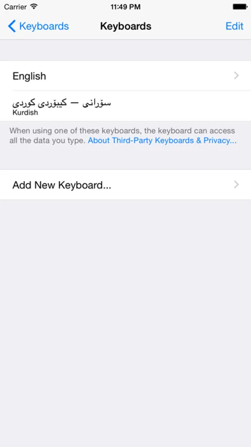 ئەمە کیبۆردی کوردی سۆرانیە بۆ سیستمی iOS8 بۆ سەرەوە.