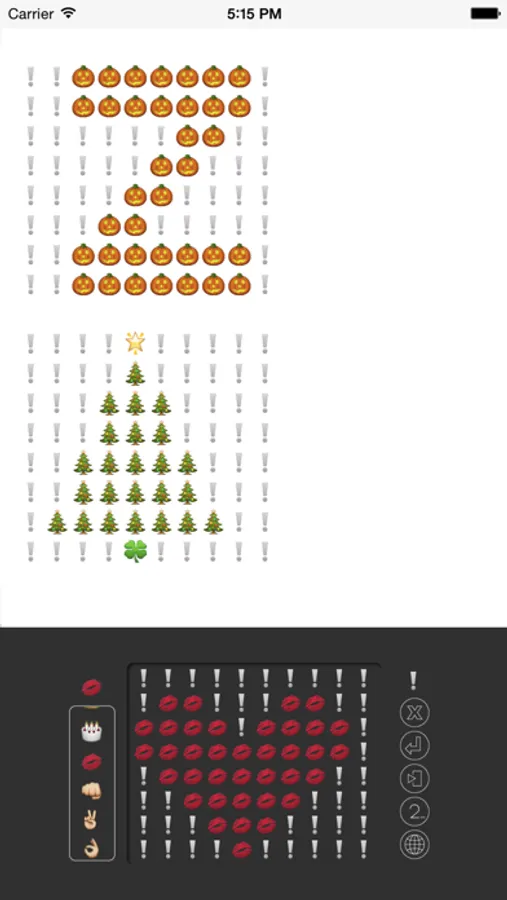 Emoji Doodle even has huge collection of Emoji icons for you to use as "color pen". Say, it's up to you to choose a rose icon, a lip icon or combination of any of the Emoji icons to draw your big "Heart" Emoji art. Write a big "Hi" using the pumpkin icon in Halloween, Christmas tree icon in Christmas, birthday cake on your friend's birthday! Chatting with friends using Emoji art has never been more fun and convenient!