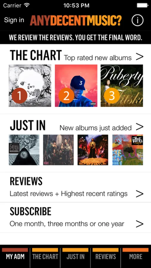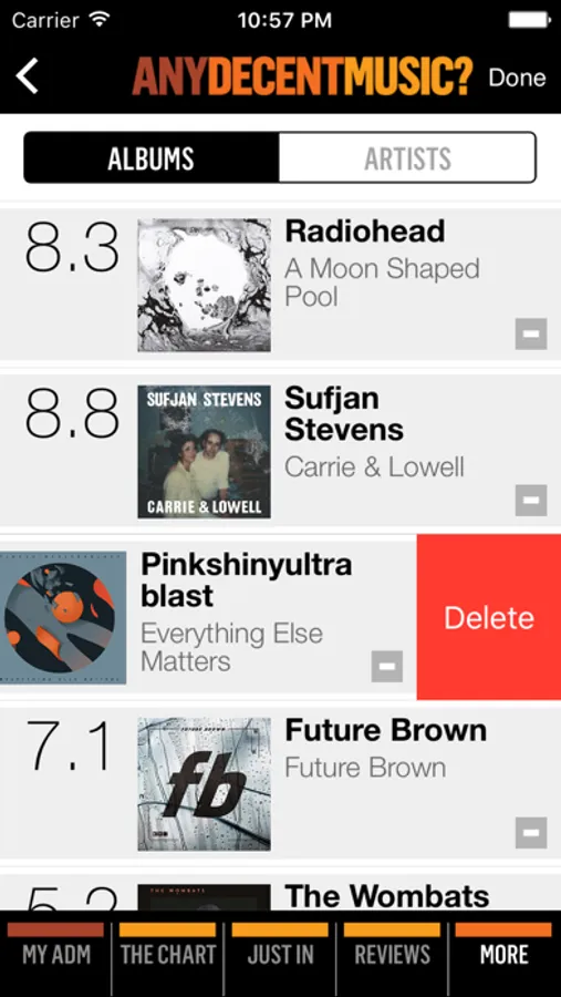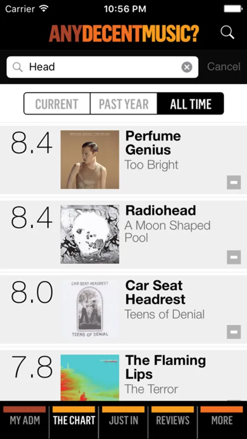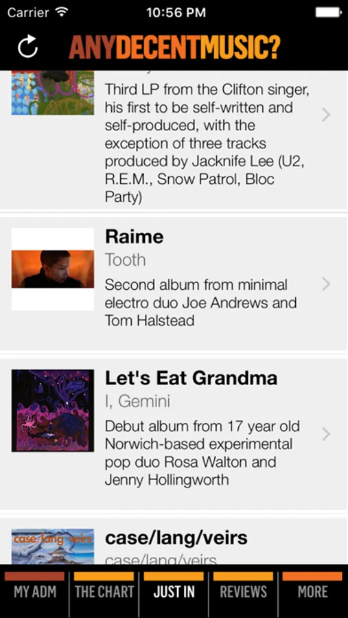 AnyDecentMusic? is an album review aggregator providing a constantly-updated chart of the highest-rated current contemporary music albums.