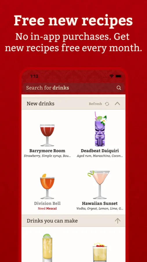 * No in-app purchases - you buy it once, you get updates and new drinks forever.