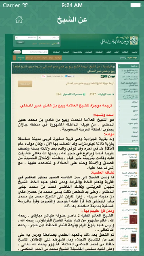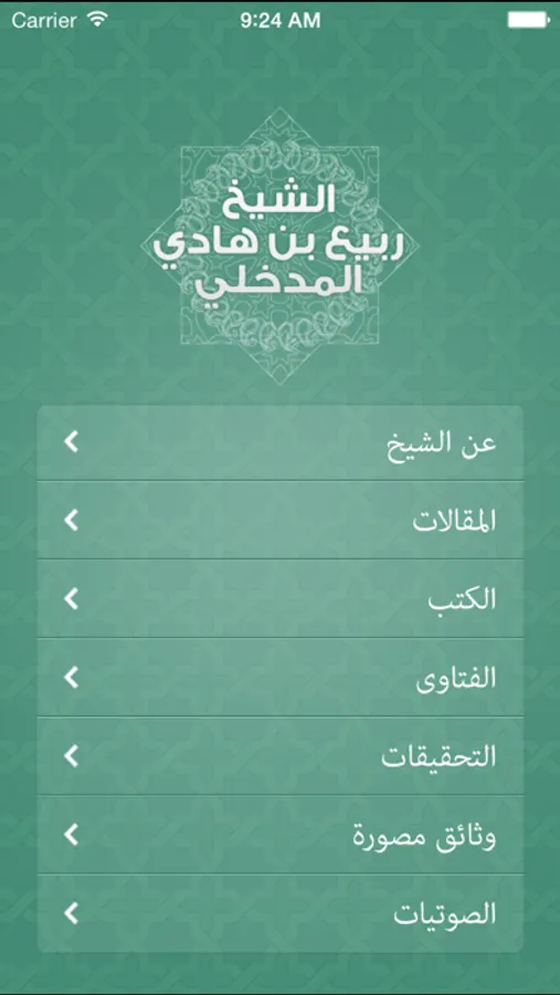 التطبيق يحتوي على محاضرات صوتية، مقالات، فتاوى، كتب وأعمال أخرى من الشيخ ربيع بن هادي عمير المدخلي