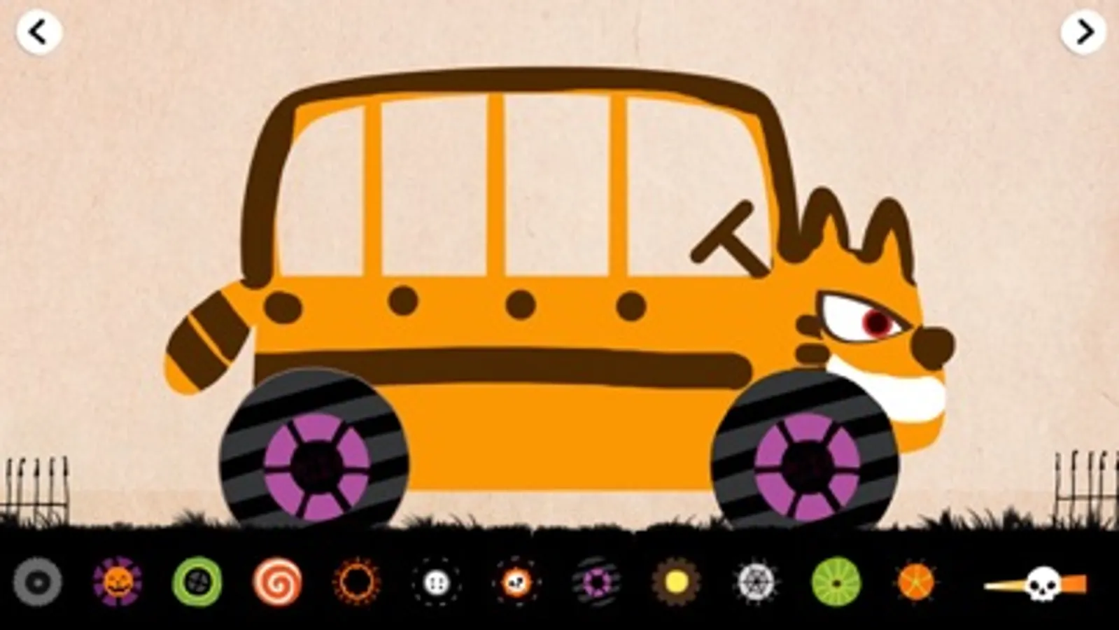 This app comes with 30+ tutorials that walk you through the process step-by-step, or allows you to draw a car freely as you wish. You can decorate the car with thirteen different colors.Other add-ons include 25 sets of tires that can be customized in size and spacing, a lots halloween-theme stickers and lights for more flair. Once You are happy with their vehicle, you can then use it on one of 21 roads. Each road is a mini game and there are spooky obstacles to watch out for along the way!