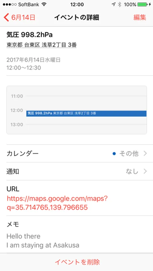 This app is able to measure atmospheric pressure (hPa) with iPhone6 later and write down on your calendar.