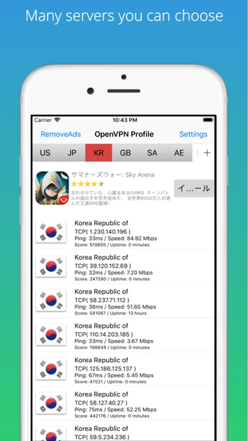 * Servers grouped by countries, So you can select the country you want to connect easily.