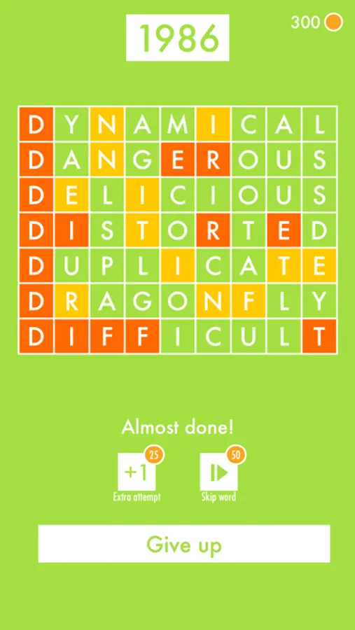There are some jokers to help you: bonus letter, extra-attempt for example. Use them wisely :)