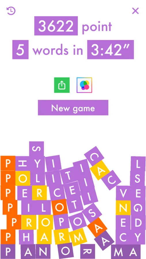 If you prefer a stress-free game, enjoy the "Practice" mode: no time limit, choose the letter count. Progress a your own pace.