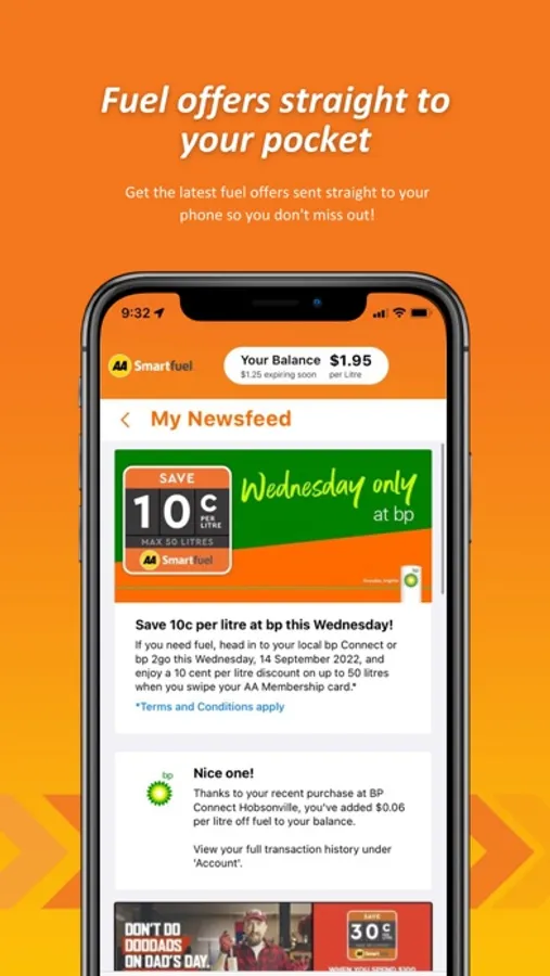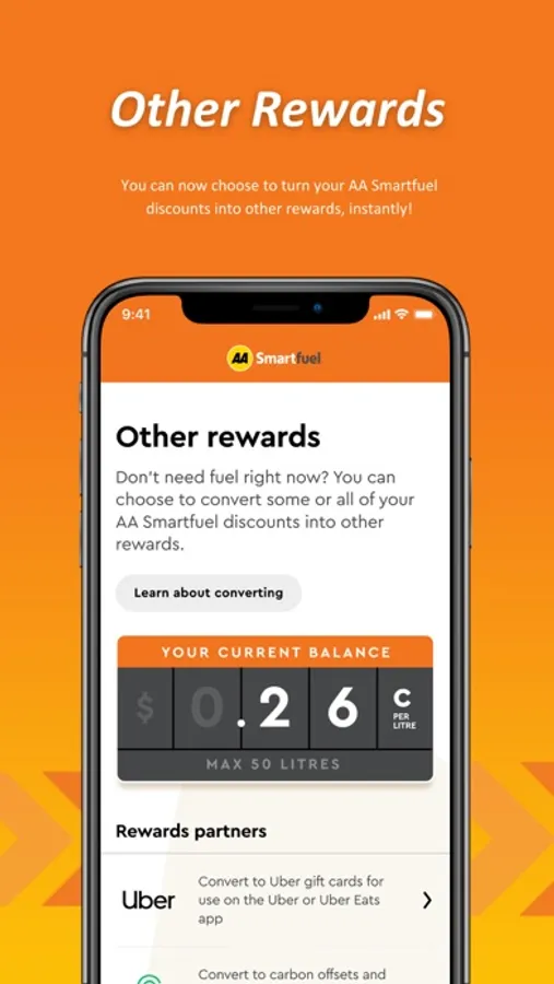 Download the free AA Smartfuel app to keep track of your AA Smartfuel balance, recent transactions, total savings to date and any discounts due to expire. You can also choose to turn some or all of your AA Smartfuel discounts into other rewards instantly through the app.