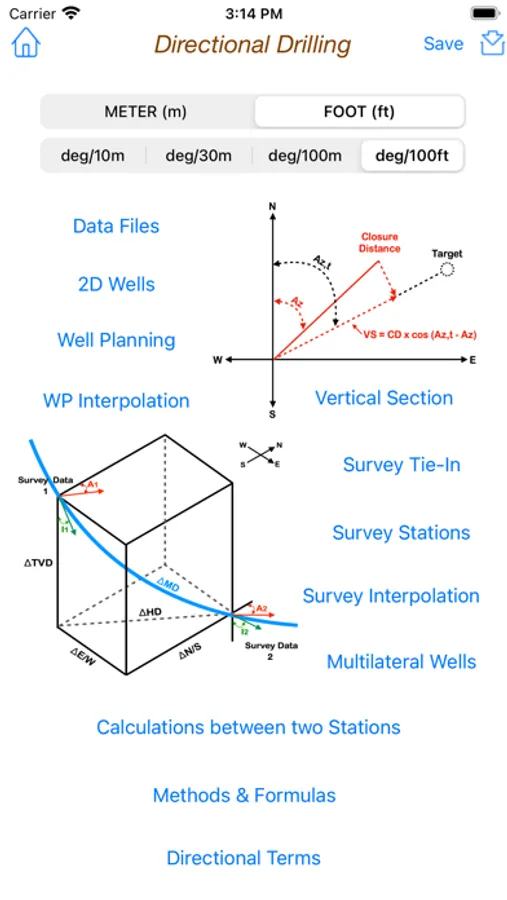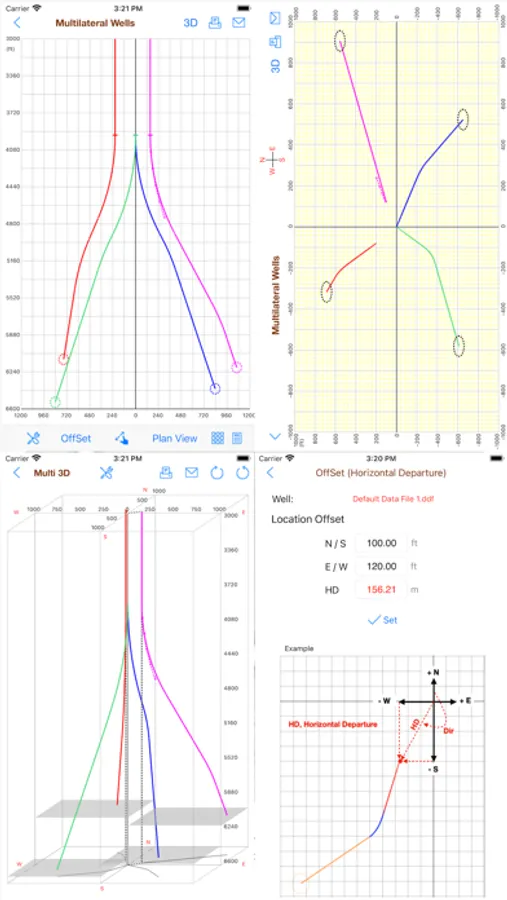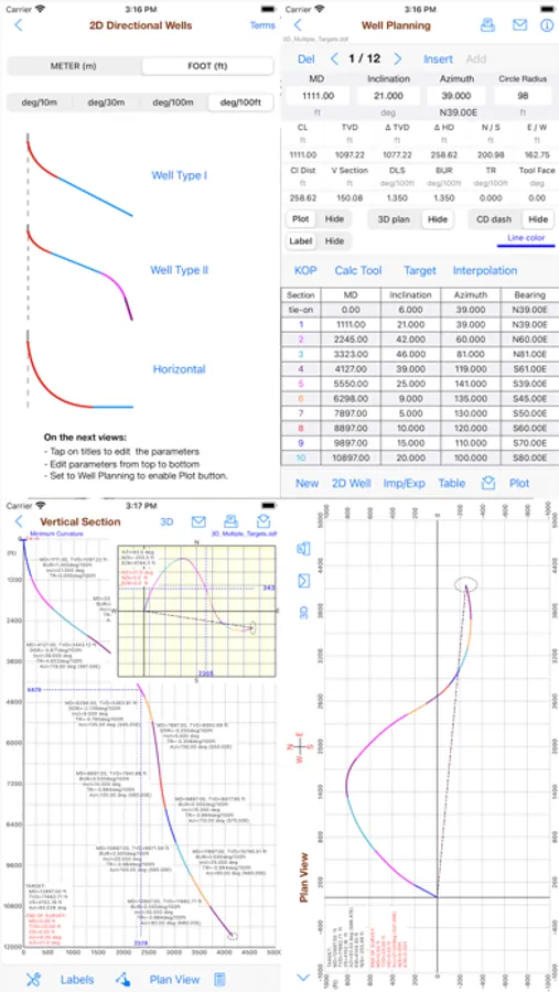 The Directional Drilling provides the useful tools for the drilling of oil wells with well planning, survey data, multilateral wells, plotting in vertical section, plan view and in X-Y-Z (3D), easy tools to create 2D wells and also to calculate 3D sections, calculations between two survey stations and formulas.