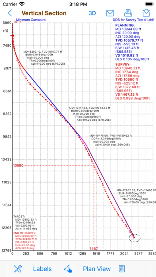 20. Ability to get a simulated survey (steps 10m, 30m, 100m or 100ft) from Well Planning interpolations;