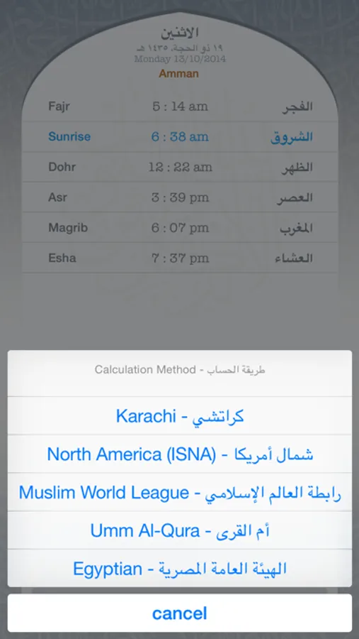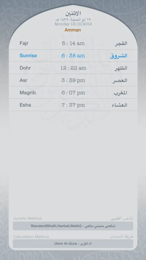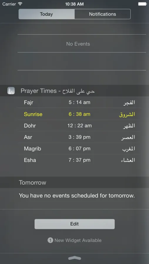يوفر التطبيق امكانية عرض اوقات الصلاة في مركز التنبيهات