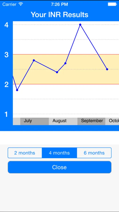 Your INR results are displayed graphically and in a table and you can add earlier INR results so you can see a complete record over time.