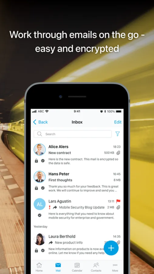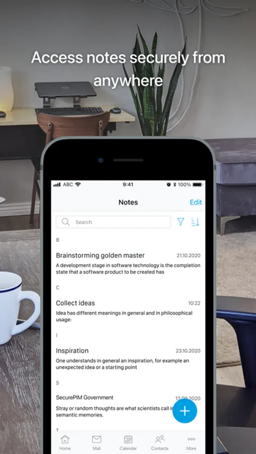 SecurePIM – Secure mobile work for authorities and organizations. Make use of all the essential business features securely combined into one single app: emails, messenger, contacts, calendar, tasks, notes, web browser, documents, and camera. Intuitive usability meets the highest security – all "made in Germany".