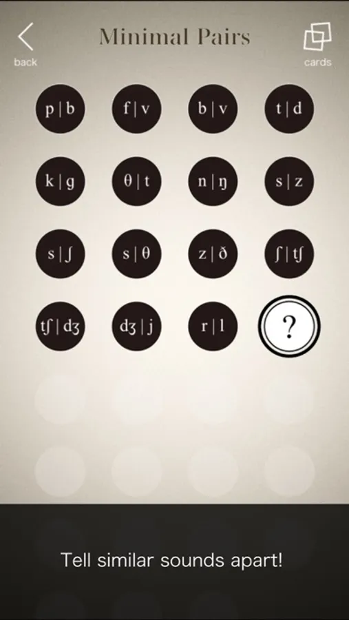 "Phonetic Cards" is a puzzle game based on the ground-breaking app "The Phonetics". No knowledge of English phonetics is required to complete the game, and you can take your time to enjoy playing it while relaxing. It is designed to give you an understanding of English phonetics simply by playing the game over and over.