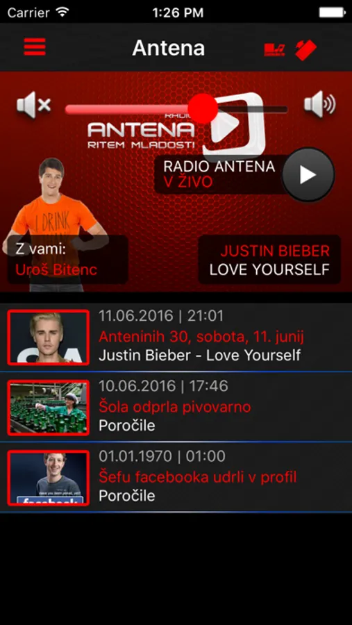 Največ novih hitov na najbolj popularnem radiu za mlade - Radiu Antena zdaj tudi na tvojem iOS.
