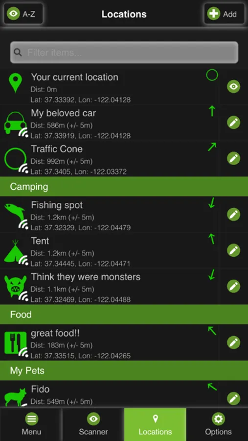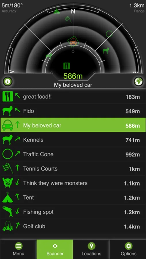 Unlimited locations can be added, categorised into groups, and shared with friends. Alf will show you chosen locations on its scanner and lead you to them... as long as they're not Aliens.