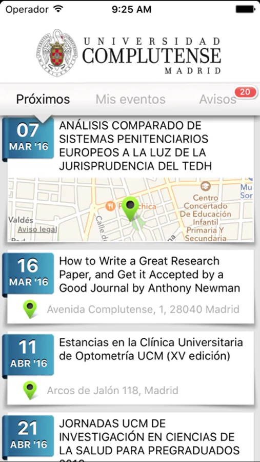Desde esta app podrás conocer y gestionar tu asistencia a eventos académicos, jornadas, congresos, seminarios, ferias y cursos organizados desde la Universidad Complutense de Madrid.