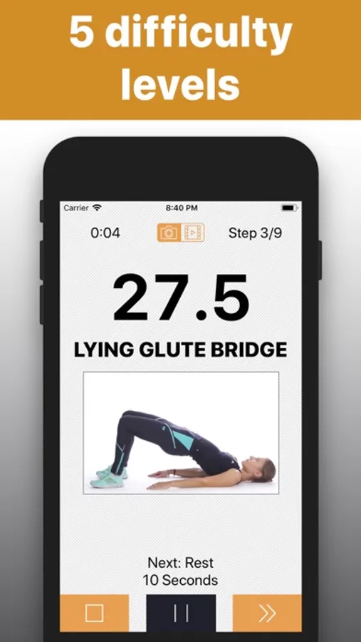 - Every workout has it's detailed description, step-by-step photo and video instruction and also animated instruction;