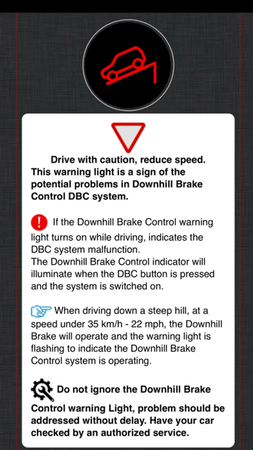 The app features warning lights and dashboard symbols from all Toyota, newer and older models. With a detailed description and an explanation of the problem.