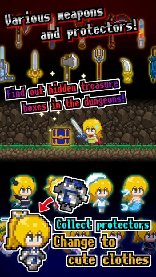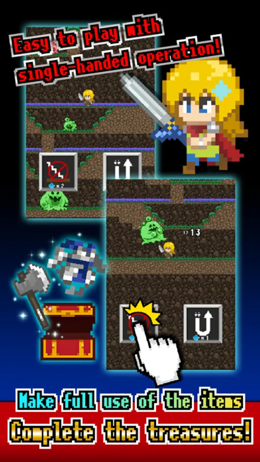 Characters start running toward a goal without any complicated operation. All you need is to direct them by tapping and help them explore the dungeon!