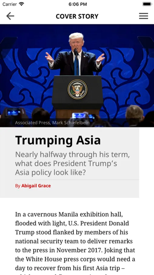The Diplomat is the premier current affairs magazine for the Asia-Pacific. This monthly publication is your comprehensive source of exclusive news, analysis and commentary on this dynamic region. Featuring the best writers from around the region, the magazine covers all that matters in diplomacy, security, politics, economics and society.